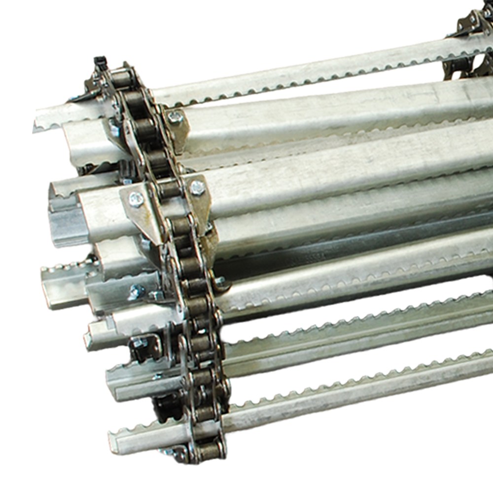 This complete chain assembly is supplied with connectors and half links for each strand. We supply these chains in Australia from premium grade chain and high performance rolled serration 6mm grade 350 u-bar slats. We guarantee the quality of this assembly, however we recommend you fit a new sprocket at the time of installation.