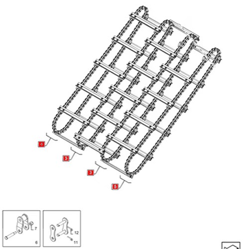 You can re-chain your assembly using the original New Holland® serrated slats. This chains only set is supplied with threaded connectors and half links for each strand. We supply these chains in Australia from premiuum grade chrome pin chain. We guarantee the quality of these unit, however we recommend you fit new sprockets at the time of installation.