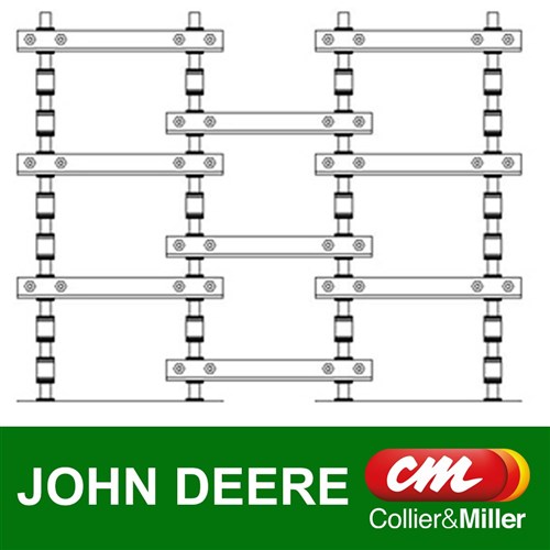 C&M replacement chains only feeder house chain assembly to suit the front feeder house on 9600 & 9610 SERIES John Deere combine harvesters.This is a set of four (4) replacement chains only set with the same spacing as the original John-Deere chains.