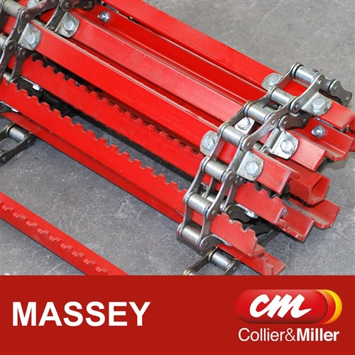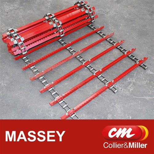 AUSDRIVE replacement Feeder house chain assembly to suit the feeder house on Older Massey combines. We know this assembly fits the 3342 & 542. This is a three (3) chaincomplete assembly in the same bar patten as the OEM chain.Comes fully assembled with connectors and half linksfor all chains. We build theseassemblies in Australia , all bars are cut, bent and punchedby us and we guarantee the quality of these units. Just make sure you replace the sprockets at the time of installation. IF NOT IN STOCK WE BUILD THIS ASSEMBY TO ORDER. FAST DELIVERY TIMES AREGUARANTEED.