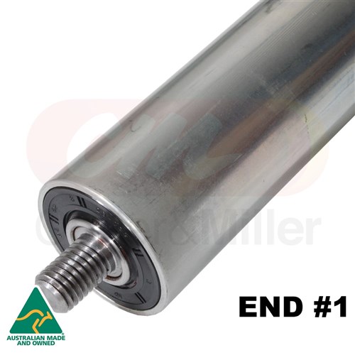 C&M aftermarket center feed belt idler roller with shaft and bearings to suit Macdon, Case and New Holland draper cutting platforms. This center feed belt idler roller is is a complete unit fitted with shaft and bearings. Manufactured from from heavy wall pipe for increased service life.