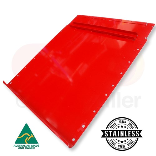 C&M Australian made stainless steel aftermarket feeder house lower panel to fit Case-IH® mid series combine harvesters fitted with a 54 1/2" feeder house. This lower panel is manufactured from 3mm stainless steel sheet and includes stiffener brackets and reinforcing strips.