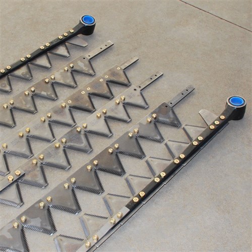 USA made aftermarket complete knife section to suit popular Macdon, Case IH and New Holland draper header fronts. Supplied in 6 sections for easy shipping this assembly is supplied with premium quality coarse knives, overlap kit and knife heads.