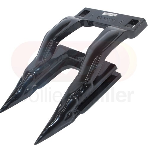 Genuine Schumacher® center overlap EasyCut II replacement 12mm knife guard used in the overlap area on double drive platforms . For maximum stability and height control, the EasyCut II guards are bolted to the top and bottom of the angle bar and are supported by a wear plate. The Schumacher® guards have top and bottom cutting edges for balanced control of the sections.