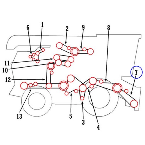 Aftermarket HC series agricultural belt to fit CASE-IH combine harvesters. This belt is a banded HC heavy backed drive belt used on the feeder drive without rock trap on common Case-IH harvesters.