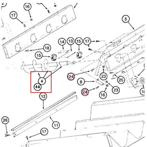 Aftermarket extended wear right hand grain bed auger to fit CASE-IH® mid series combine harvesters.