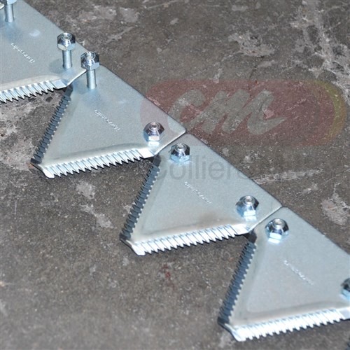 Australian made double drive coarse cut knife to suit Macdon, Case IH and New Holland cutting platforms. This knife is a coarse cut knife to suit 45ft Double knife drive cutting platforms. Includes the Left/Right hand sides and centre overlap. Comes assembled with knife back, sickles and bolts.
