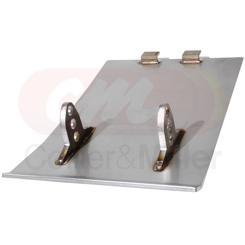 C&M Australian made skid plate to fit MacDon® D2 & FD2 series header fronts. This is the optional high wear skid shoe assembly and is manufactured from 6mm stainless steel with integral  mounting feet. The heavy duty stainless assembly is fitted using the existing MacDon® engaging rod and comes ready to install.