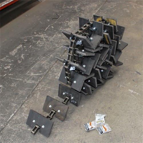 AUSDRIVE replacement Main Grain Chain assesmbly. We knowthis chain assembly fits the CASE IH 1688 2388 2388 Exclusive 2588 6088 7088 Combines. This is a complete assembly supplied with 1 x connector and 1 x half link. We build these chains in Australia from TIMKEN-DRIVES USA made chain. They are supplied with first quality water-jet cut paddles to the correct size. All paddles are bolted on using high tenstile fasteners. We guarantee the quality of these chains, just make sure you replace worn sprockets at the time of installation.IF NOT IN STOCK WE CAN BUILD THIS ASSEMBLY WITH A VERY SHORT DELIVERY TIME. CONTACT US TO GET AN ETA.