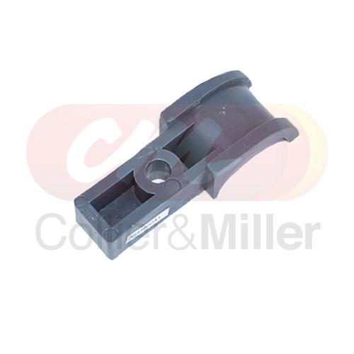Aftermarket bat tube connector half to suit early model Case IH cutting platforms. This bat tube connector fits on the end of the pickup reel arm to hols the reel pipe and is held in place with a strap.
