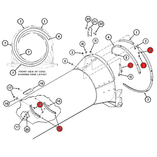 Aftermarket stainless steel (extended wear) vane kit to suit transition cone on Case-IH Mid series combine harvesters. This stainless steel vane kit  fits the transition cone off Case Mid-Series combine harvesters. Fitment of stainless vane's allows for increased service life and improved feed of tough long straw product into the rotor.