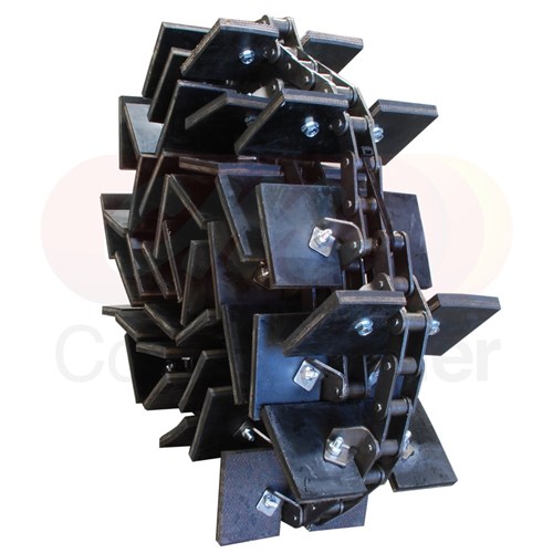 C&M Aftermarket replacement clean grain chain to suit John Deere combine harvesters. This chain assembly suits the clean grain elevator, it is supplied fully assembled and ready to install. Manufactured in Australia from premium quality roller chains and water-jet cut paddles.