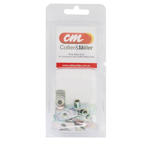 Aftermarket replacement tee-nut to fit retractable finger guides on Case, Macdon and New Holland header fronts.
