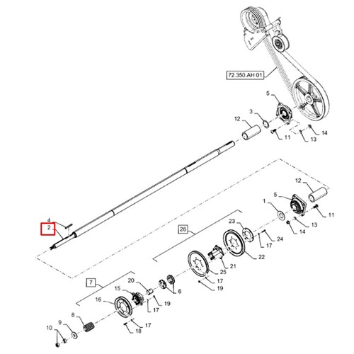 C&M aftermarket upgraded one piece beater drive shaft to suit late model Case IH combine harvesters. This Zinc coated beater shaft drive is an upgraded one piece shaft, not a three piece. The shaft has also been enhanced with a second key way added to the main part of the shaft, opposite each other to give a positive drive on the Beater, driving on two keyways. Total length of shaft 103-1/4" (2622mm)