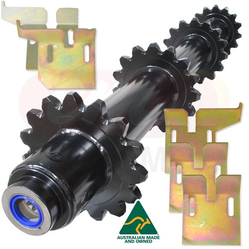 C&M aftermarket grain harvesting kit including a feeder house sprocket and set of pivot (stripper) plates kit to fit the feeder house on Case-IH® 120, 230 & 240 series combine harvesters.