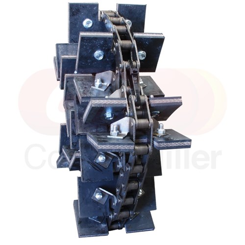 This chain assembly is manufactured from CA550 chain, supplied with connectors and half links and paddles are bolted. We supply these chains in Australia from premium grade agricultural chain and quality reinforced paddles.