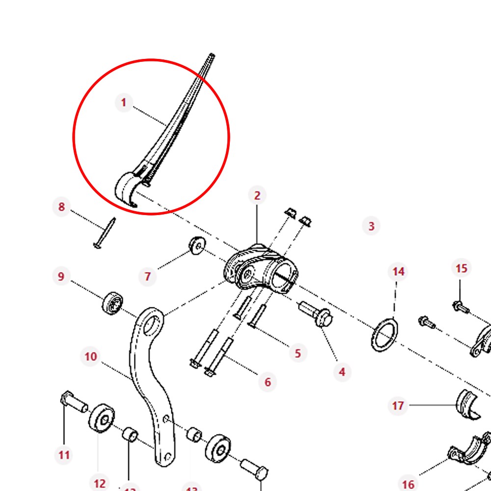 Aftermarket 50mm tube diameter plastic reel tine finger to fit AGCO® Dynaflex® fronts. This is a heavy duty plastic reel finger to suit 50mm tube. The Dynaflex® reels are  supplied on Gleaner®, Massey Ferguson® and Fendt® branded fronts.