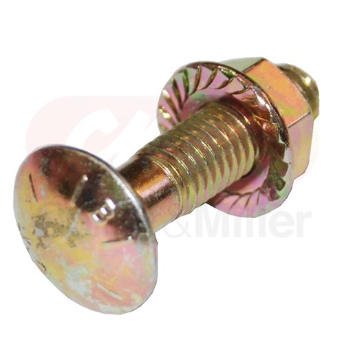 High tensile knife guard bolt and flanged nut to suit Macdon and CNH cutting platforms. This Grade 8 High tensile cup head bolt and flanged nut for fastening knife guard's in place when fitted without poly skid plates.