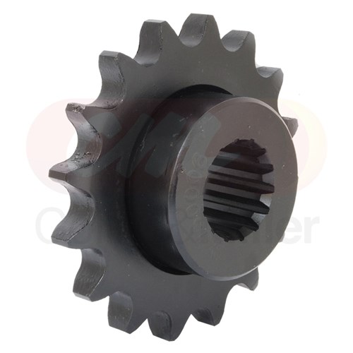 C&M aftermarket 16 tooth drive sprocket to suit late model Macdon and CNH cutting platforms. This hardened drive sprocket has 16 Teeth with an 1-1/4" x 14 spline hub, and used on the drive for the Centre feed drum. The sprocket runs 60 pitch chain to drive the 37T sprocket bolted to the feed drum.