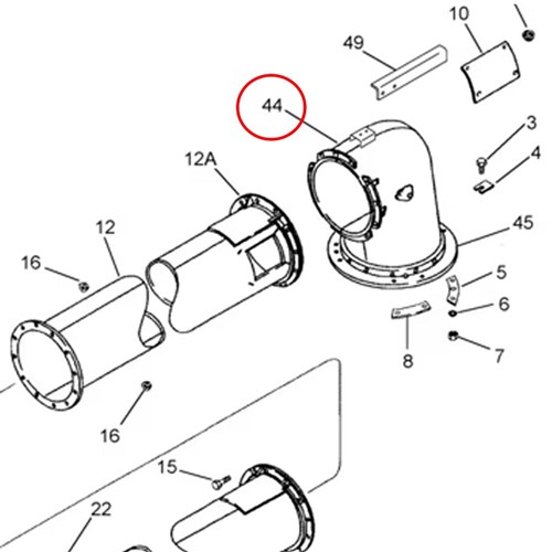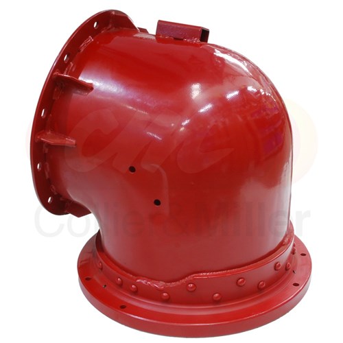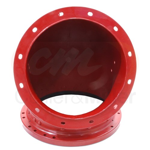 A&I Parts aftermarket standard wear unload auger connection elbow to fit Case IH® combines. This is a standard wear elbow is manufactured with a 1.00" thick mounting ring drill with 3 x grease nipple holes. The housing is drilled to accept the upper un-loading auger gearbox and grease nipple.
