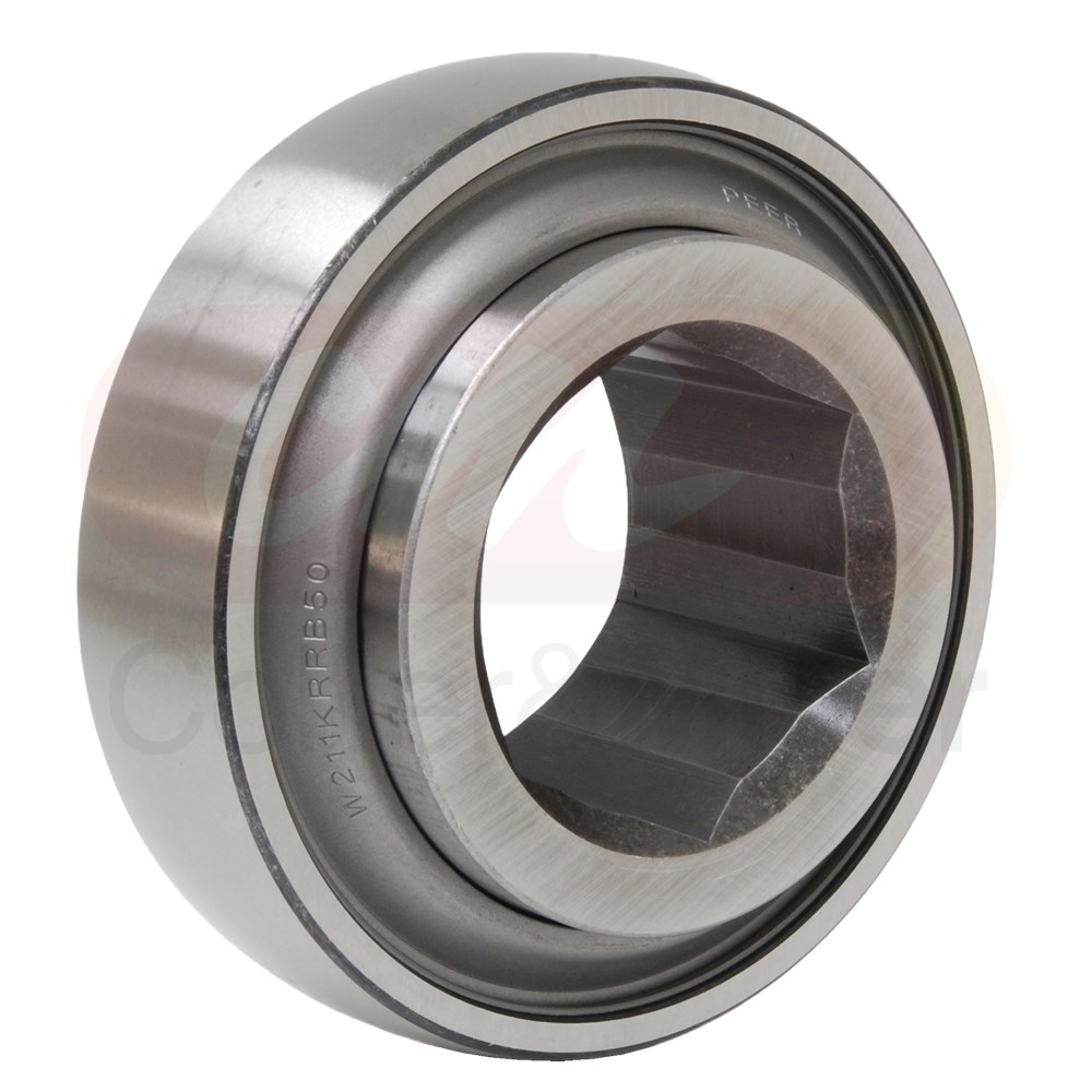 Genuine PEER® hexagonal self aligning bearing and collar to fit Case-IH® feeder house sprocket shaft. This bearing assembly is genuine PEER® brand and is pre-lubed for life with wide inner ring.