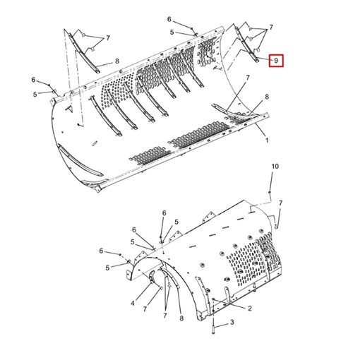 Aftermarket transport stiffener vanes for the transition area rotor cage off Case IH Flagship combine harvesters. This is one of the four shorter vanes mounted in the rotor cage.