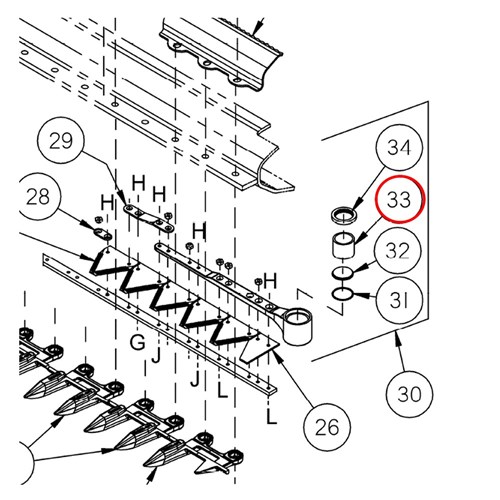 Genuine Koyo B-2020 full compliment needle roller knife head bearing to suit the knife drive head on common Case-IH®. MacDon® & New Holland® draper fronts.