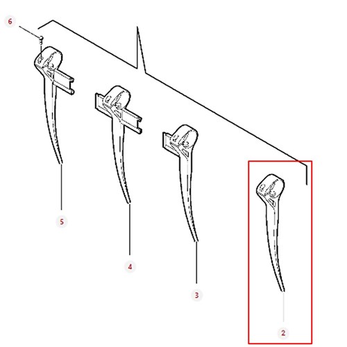 Aftermarket finger tine with no wings to suit various cutting platforms such as Case, Agco, New Holland, John Deere, Honeybee, and Massey Ferguson. This poly finger tine has no wings and mounts onto the end of the 35mm (1-3/8") reel tube with 12.5mm (1/2") hex holes spaced every 152mm (6") apart. suit various cutting platforms. Does not come with mounting screw.