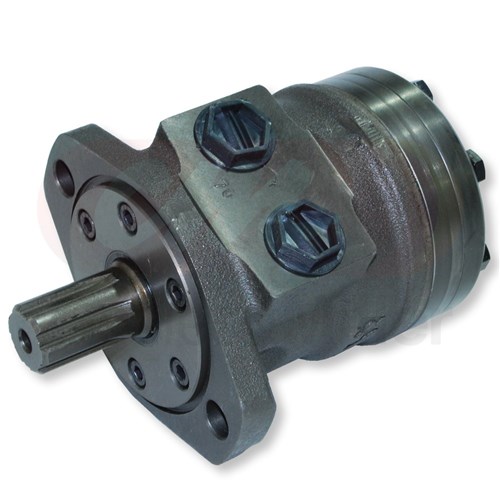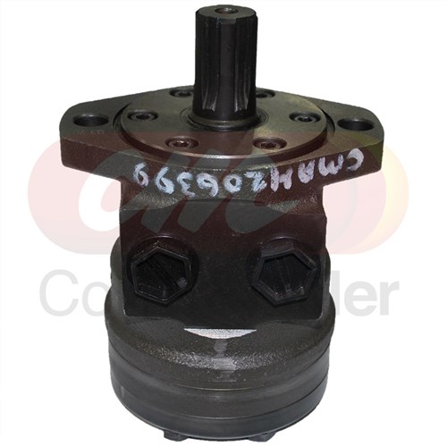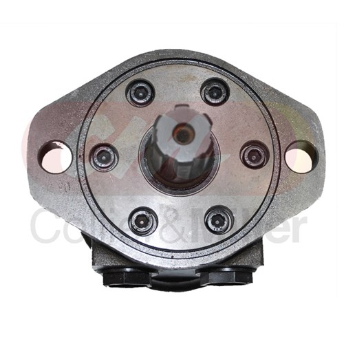 M+S aftermarket hydraulic reel return motor for early John Deere draper cutting platforms. This hydraulic motor operates as a pump for the draper drive.