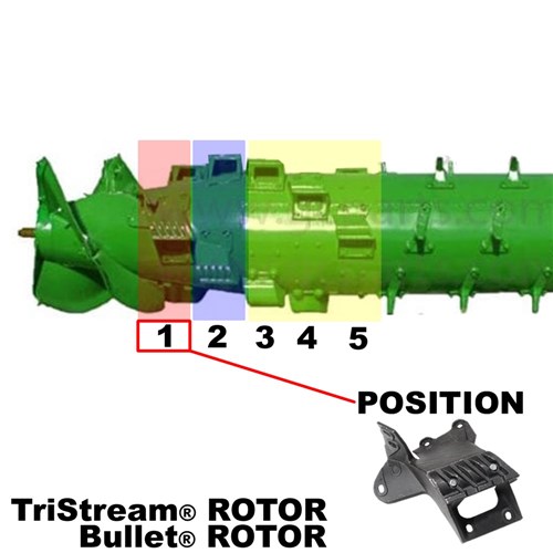 Aftermarket high wear threshing element kit to suit Tristream™ (Bullet™) rotor on popular John Deere combine harvesters. This high wear threshing kit contains 3 x elements and are designed to mount of the front surface of the front cone.