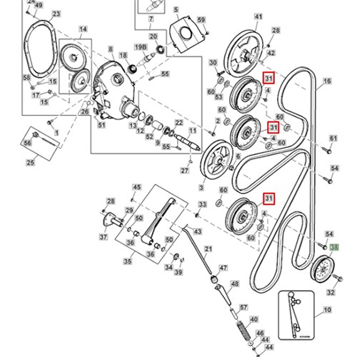 Aftermarket clean grain elevator idler pulley to fit John Deere® combine harvesters. This pulley is part of the clean grain elevator functional area.