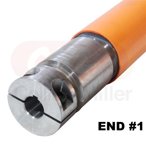 C&M made in Australia centre feed belt drive roller to suit John Deere® 600 and 700 series draper platforms. This centre feed belt drive roller is supplied vulcanized and is manufactured from heavy wall cds tube, fitted with a quality Timken® Fafnir® hex bearing. The heavy wall tube provides increased service life at the high wear area at the end of the roller. The roller has 2 V guides and also is fitted with a split hub, clamp bolt style with 2 x cap screws on the drive end.