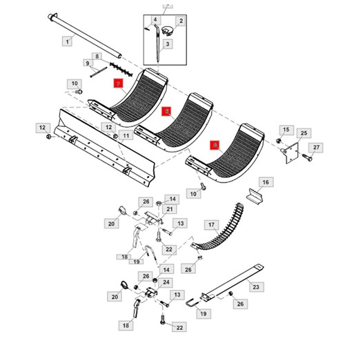 Aftermarket cereals and small grain extended wear small wire concave set to suit John Deere combine harvesters. This kit contains 3 concaves for Position 1, 2 & 3. This set is a small wire type small wire bar concaves.