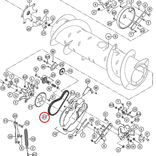 Aftermarket roller chain drive assembly as used on common Case-IH and Macdon draper front center feed adaptors.
