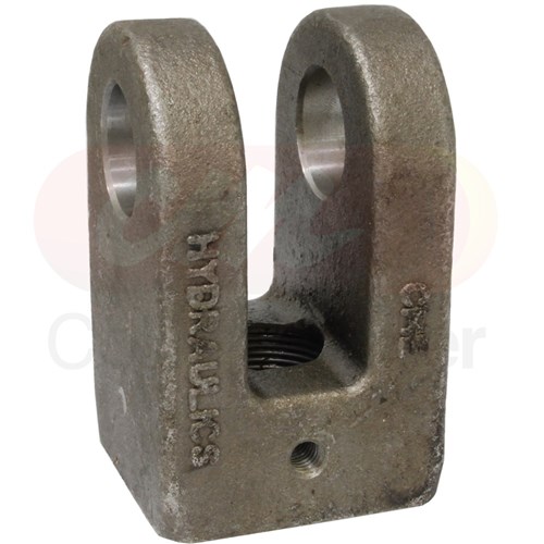 Quality cast steel hydraulic cylinder clevis yoke. Threaded to fit the rod end on agricultural hydraulic cylinders.