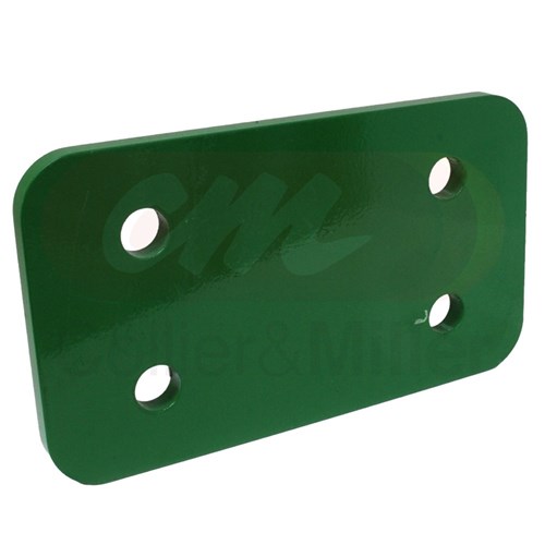 C&M made in Australia tow bar plate to fit hitch mount on John Deere® X9 series combine harvesters. this is a 10mm spacer plate 200mm x 110mm designed to mount the AXE53894 tow hitch. It replaces the 2 x HXE96603 JD straps.