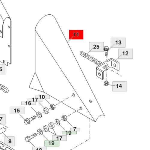 Aftermarket stalk lifter shield fitted to John Deere® Pro-16 picking units.