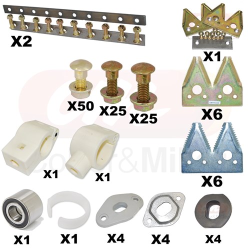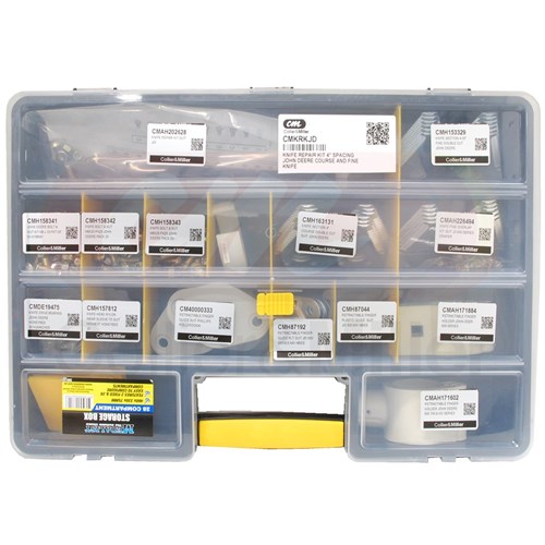 C&M aftermarket knife repair kit with popular parts to fit knife sections base on 4.00" centers. This kit contains the most popular consumable items for knife repairs and maintenance and packed in a convenient plastic carry case.