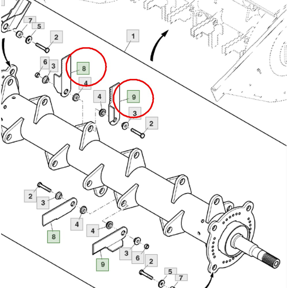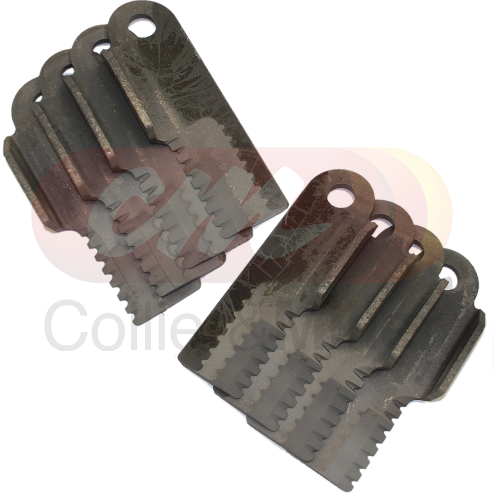 Aftermarket serrated straw chopper blade-knife kit to suit John Deere® S series combines harvesters. This straw chopper blade kit contains 4 Left Hand & 4 Right Hand winged blades. Each blade has a hardened serated edge with an abrasion resistant coating for increased service life.