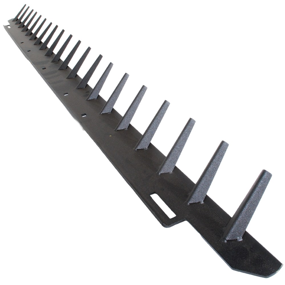 Manufactured from stainless steel it will fit Macdon® and Case-IH® fronts and bolts onto the front of the center feed adaptor using existing bolt holes. Designed with extra high finger's to prevent rocks going over the top.