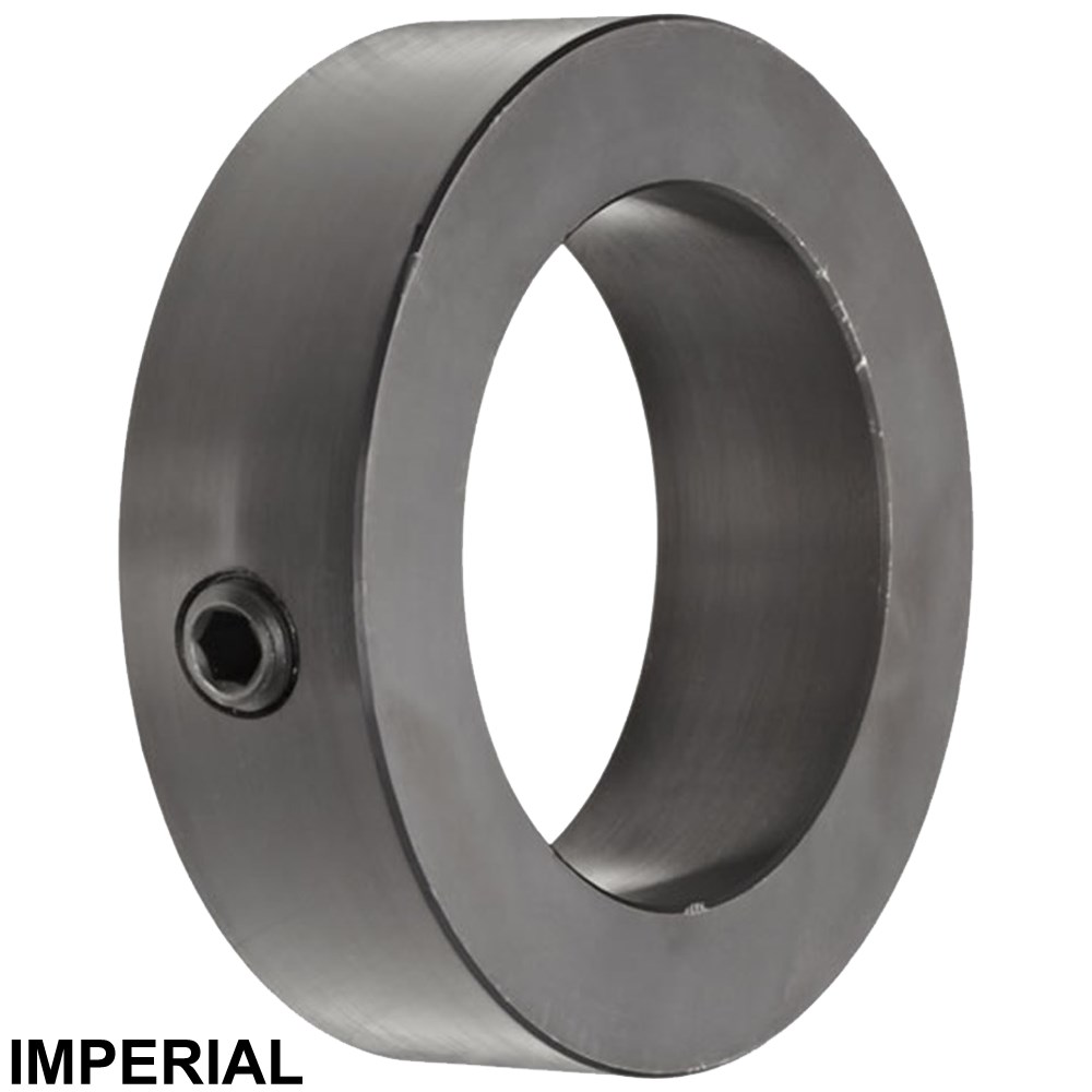 These plain bore shaft collars are equipped with a grub screw, making them suitable for various industrial applications. Set screw collars perform optimally when installed on shafts made from materials that are softer than the set screw.