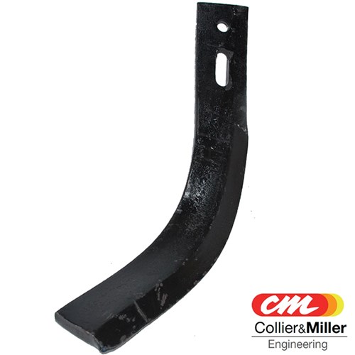 Crescent Knife, Left Hand Fitment. Part of the CME Knives and Crescent Cultivation System. 2" Blade with 3/8" Hole. Spacing includes slotted second hole for spacing 32-57mm centres. Bolts to TI201536 Shank. Use in combination with Right handcrescent knives or other beet knives.