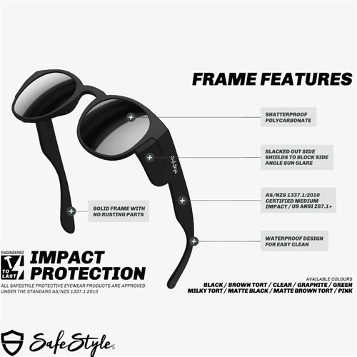 - Certified to AS/NZS 1337.1 and ANSI Z87.1+ safety standards