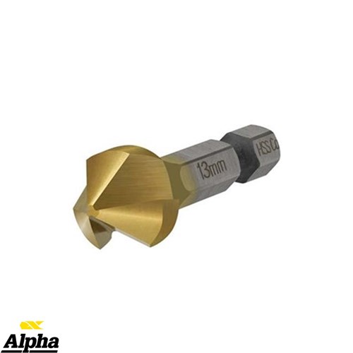 Alpha Gold Series 3 Flute Countersink – 13mm TiN, 1/4" Hex Shank (Carded)