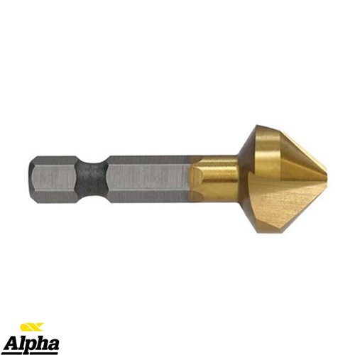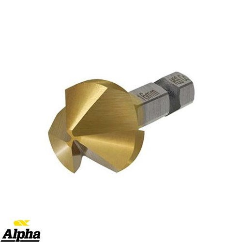 Alpha Gold Series 3 Flute Countersink – 16mm TiN, 1/4" Hex Shank (Carded)