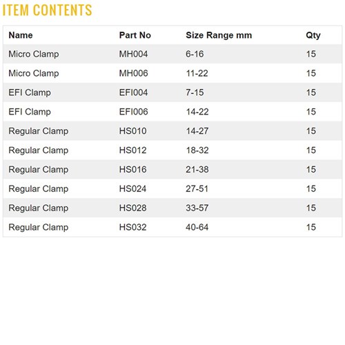 This tridon clamp kit has a huge range of popular MH & HS Series perforated hose clamps.