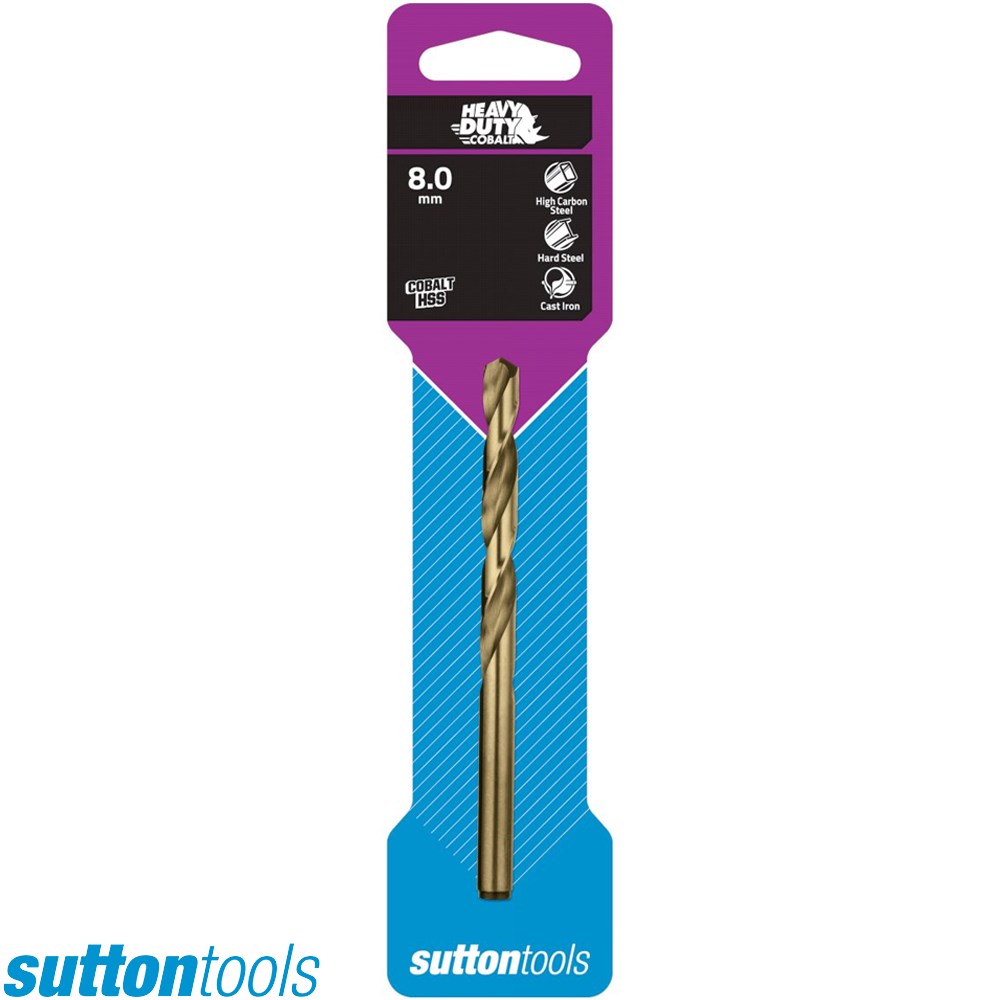 Sutton Tools Heavy Duty Cobalt jobber drills are industrial quality for drilling materials that have high hardness and tensile strength such as cast iron, bronze, hardened steel & stainless steel. These drill bits feature a thick core for increased rigidity in hard materials.