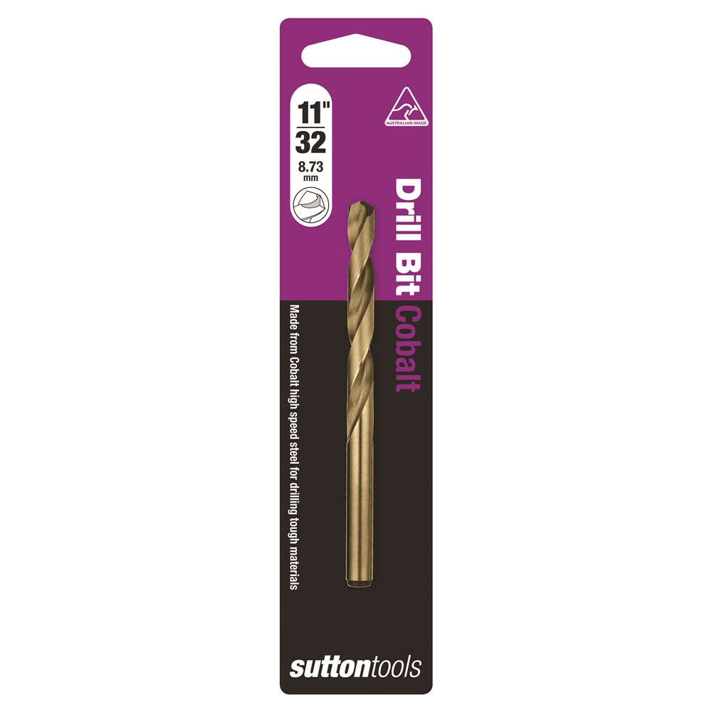 Sutton Tools Jobber Drills Heavy Duty Cobalt. Precision ground from solid cobalt alloyed high speed steel for superior drilling performance. The 5% cobalt formula improves abrasive & heat resistance, for increased strength at higher drilling temperatures. This industrial quality drill bit is suited to drilling materials that have high hardness and tensile strength such as cast iron, bronze, weld seams, hardened steel & stainless steel.