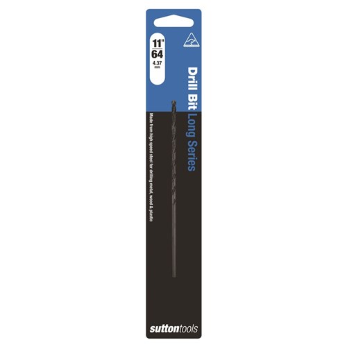 Sutton Tools Long Series Drills Blue Bullet. These Drill bits offer a longer flute and overall length than standard drill bits making them ideal for drilling deeper holes. Features a 118 Degree standard point for general purpose applications and a precision ground flute designed for fast chip removal. The blue finish is a ferric oxide surface coating which reduces chip build up on the cutting edge, reducing frictional drag, and therefore reducing heat generated. It greatly increases drilling life and ability, especially in ferrous materials such as steel, stainless steels, high tensile steel, alloy and tool steel.