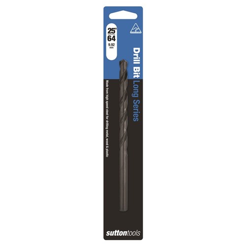 Sutton Tools Long Series Drills Blue Bullet. These Drill bits offer a longer flute and overall length than standard drill bits making them ideal for drilling deeper holes. Features a 118 Degree standard point for general purpose applications and a precision ground flute designed for fast chip removal. The blue finish is a ferric oxide surface coating which reduces chip build up on the cutting edge, reducing frictional drag, and therefore reducing heat generated. It greatly increases drilling life and ability, especially in ferrous materials such as steel, stainless steels, high tensile steel, alloy and tool steel.